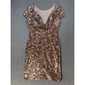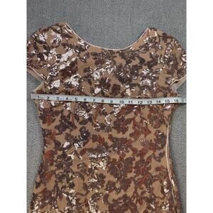 Calvin Klein Sequin Dress Mini Floral Wedding Formal Holiday Tan Size 4