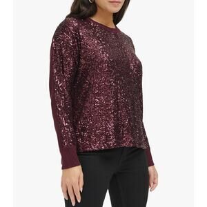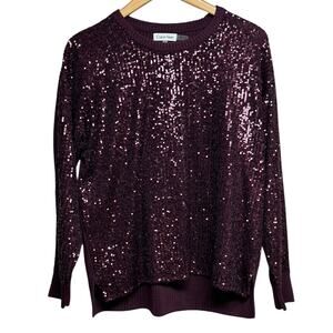 Calvin Klein Sequin Front Crew Neck Long Sleeve Sweater in Port Size Medium