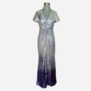Calvin Klein Sequined Ombre Maxi Dress Silver Purple V-Neck Ball Gown Size 8