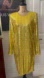 Brand new, Calvin Klein gold sequins long sleeve evening dress. Shoulder padded. Lined. Stretchy. Size 12. BUST measures: 18.5” WAIST: 16” LENGTH: 37” all measurements taken laying flat.