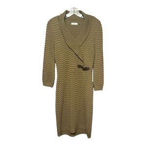 Calvin Klein Shawl Collar Textured Ribbed Knit Wrap Dress w/Buckle Accent Small