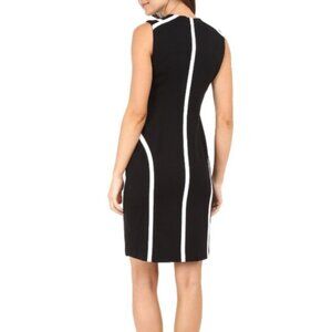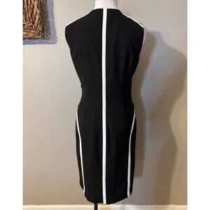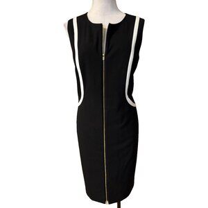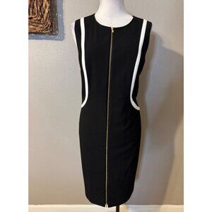 Calvin Klein Sheath Dress 14 Black White Piping Front Zip Sleeveless Career