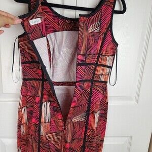 Calvin Klein Sheath Dress Cocktail Pencil Pink Orange Red Abstract Size 8