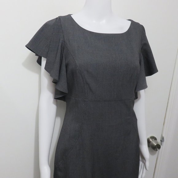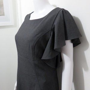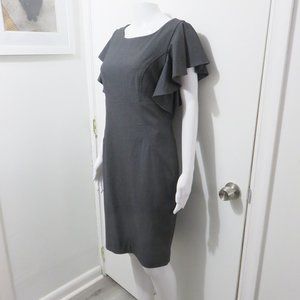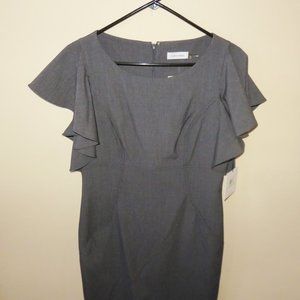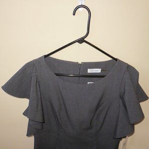 Calvin Klein Sheath Dress, Gray with Ruffled Sleeves, Sz 8 NWT