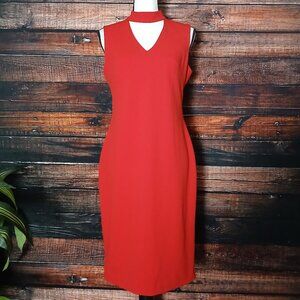 Calvin Klein Sheath Dress Ruby Red Scuba Choker