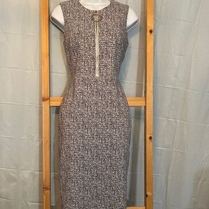 Calvin Klein Sheath Dress, Sleeveless, Exposed Gold Zipper, Size 6