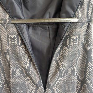 Calvin Klein Sheath Dress - Snakeskin Sleek Belt Silver Grey Fitted Slit Size 6