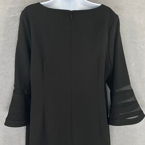 Keywords: Calvin Klein dress, black sheath dress, plus size dress, 14W dress, bell sleeve dress, mesh trim dress, cocktail dress, work dress, business casual dress, elegant dress, sophisticated dress, women's dress, formal dress, evening dress, fashion dress
