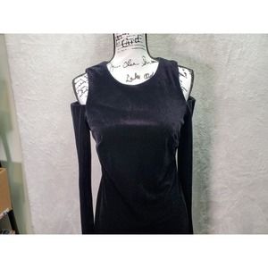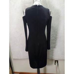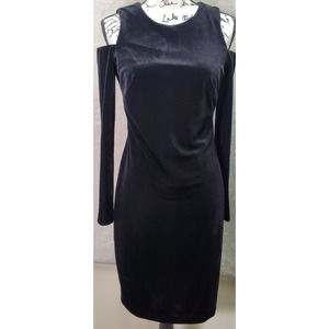 Calvin Klein Sheath Dress Womens 6 Black Velvet Cold Shoulder Sleeve Back Zipper.