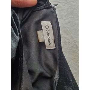 Calvin Klein Sheath Dress Womens 6 Black Velvet Cold Shoulder Sleeve Back Zipper