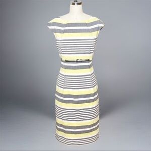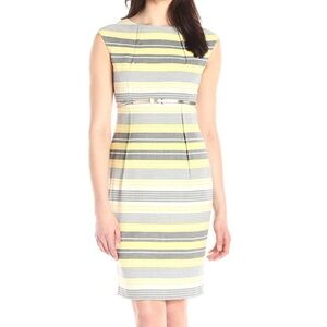 Calvin Klein Sheath Dress Yellow & Gray Stripes Size 10