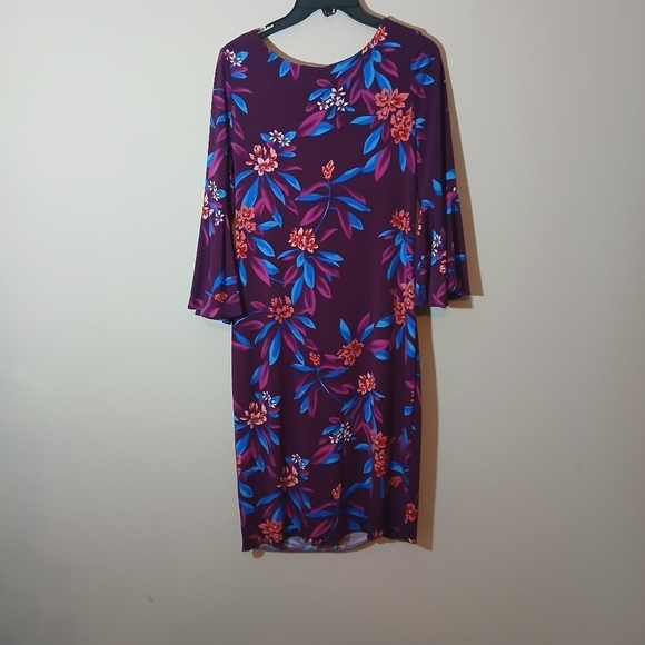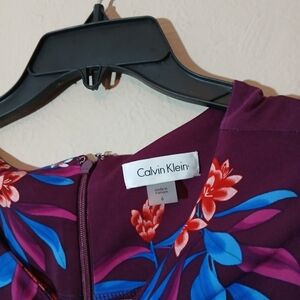 Calvin Klein Sheath Floral Dress Purple Blue Red Size 6 Knee Length Fitted