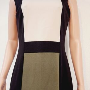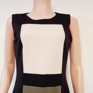 Calvin Klein Sheath Sleeveless Career Dress Zipper Back Color Block Size 10
