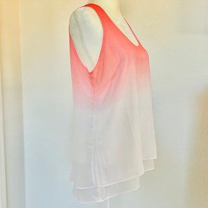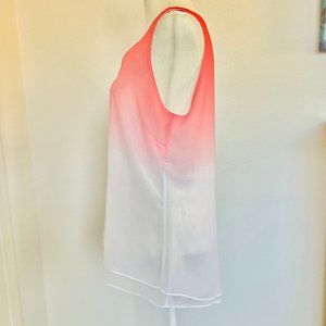 Calvin Klein Sheer Ombré Dip Dye Coral Pink & White Flowy Layered Tunic Tank Top