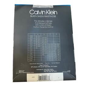 New in original sealed packaging. These rare Calvin Klein pantyhose feature a sheer-to-waist design with a subtle sheen, classic Calvin Klein waistband, and iconic black-and-white photography packaging.