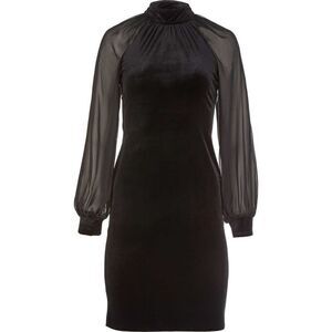 Calvin Klein Sheer Sleeve Mock Neck Velvet Dress New