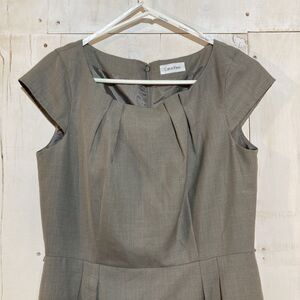 Calvin Klein Shift Dress Gray Pleats Professional Business Office Approx Sz 10/M