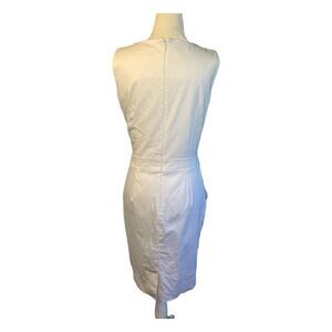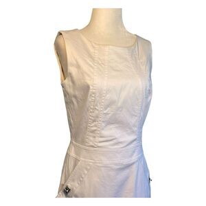 Calvin Klein Shift Dress White Cotton Twill Silver Accent Midi Sleeveless 4