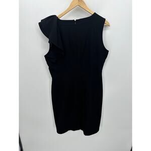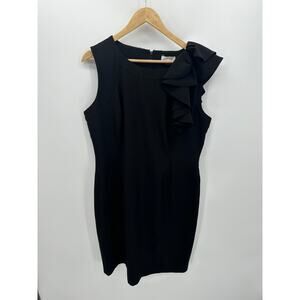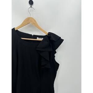 Calvin Klein Shift Dress Women 14 Black Ruffle Knee Length Career Office Minimal