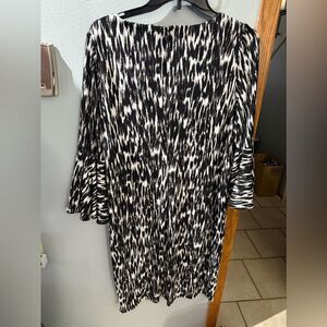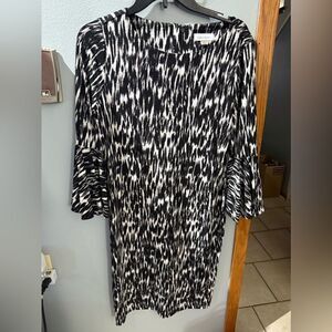 Calvin Klein Shift Dress Black White Multi Bell Sleeves Women's Size 10