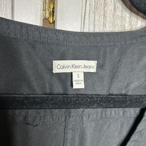 Calvin Klein Shirt Dress Snap Buttons V Neck Belt Patch Pockets Black Size S