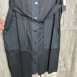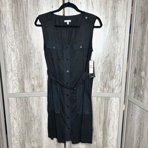 NWT Calvin Klein Shirt Dress Snap Buttons V Neck Belt Patch Pockets Black