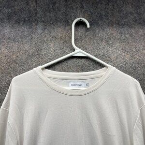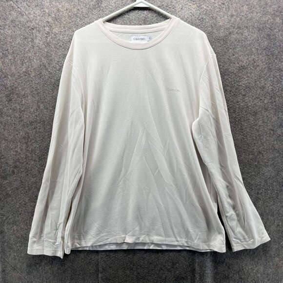 Calvin Klein Shirt Mens Large Cream Long Sleeve Crewneck Cotton Blend Casual