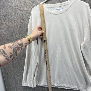 Calvin Klein Shirt Mens Large White Long Sleeve Crewneck Cotton Blend Casual