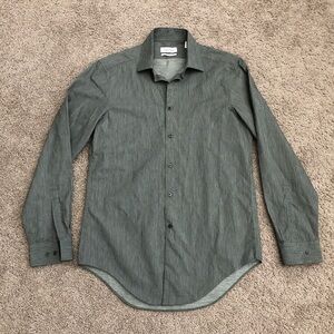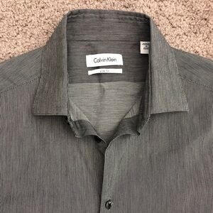 Calvin Klein Shirt Mens Size 15 32/33 Slim Fit Gray Cotton Button Up