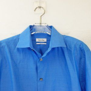 Calvin Klein Shirt Mens Size 15.5 Work Casual Button Up Blue Dress Suit Formal