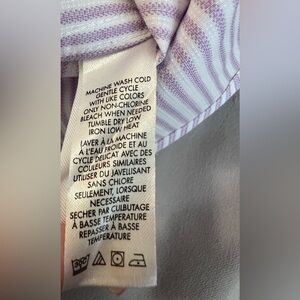 This Calvin Klein men's button-up shirt features a stylish purple pinstripe pattern with long sleeves and a collared neckline. The shirt is made of woven cotton fabric and has a regular fit. It has a button closure and is suitable for casual occasions. The shirt is a size large and belongs to the category of casual button-down shirts in the men's clothing section. The brand is Calvin Klein, which is known for its high-quality clothing.