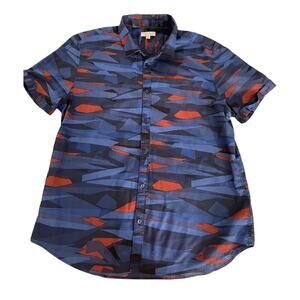 Calvin Klein Shirt Mens XL Black Blue Orange Geometric Button Up Short Sleeve