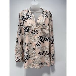 Calvin Klein Shirt Pink Floral Long Sleeve Button Up Blouse Women’s Size XL