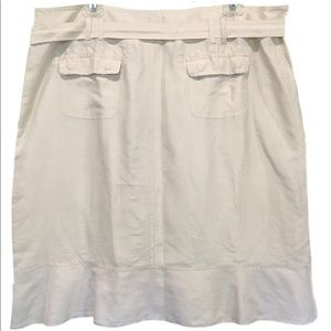 Calvin Klein Short Belted Khaki Silk Bamboo Pockets Midi Skirt Women's 16