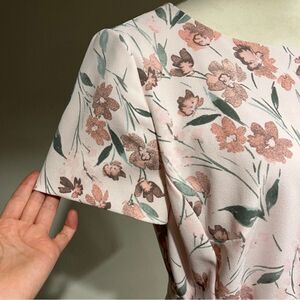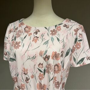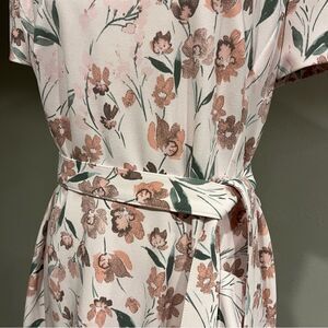 Calvin Klein Short Sleeve Sheeth Ruffle Across Bodice Floral Dress with belt
