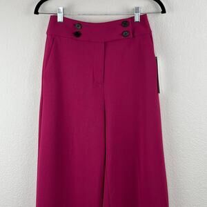 Calvin Klein Side Button Stretchy Mulberry High Rise Wide Leg Trouser Pant 2 NWT