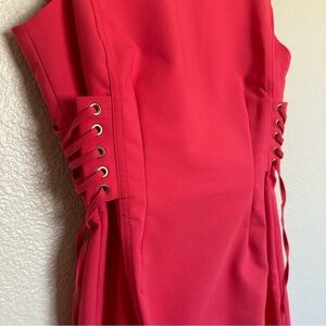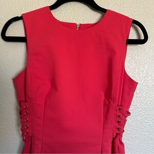 Calvin Klein Side Lace-Up Fitted Sheath Dress Pink Coral Sleeveless Full Zip.