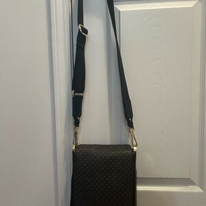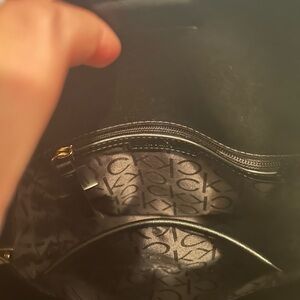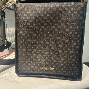 Elegant Calvin Klein bag with signature monogram. Features a sleek black and brown design.