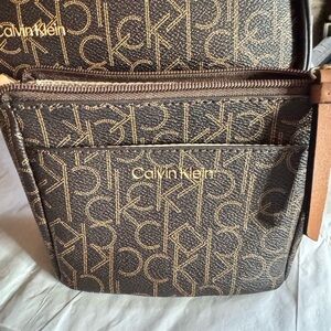 Calvin Klein Signature Brown & Gold Tote Bag with Matching Pouch