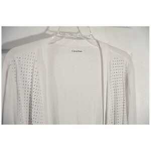 Calvin Klein Silver Beaded White Women's Open Cardigan Blouse Long Sleeve Sz L