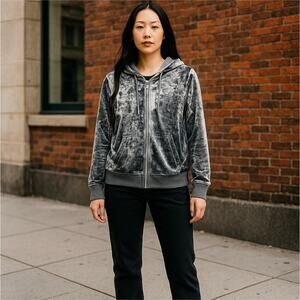 Calvin Klein Silver & Gray Velour Full Zip Jacket Hooded and Slip Pockets Size Small