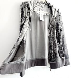 Calvin Klein Silver & Gray Velour Zip Up Jacket with Hood Size Small