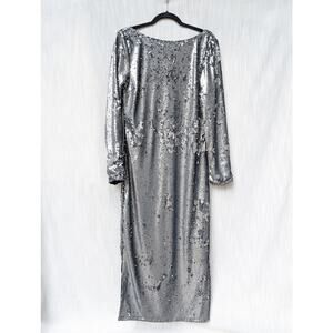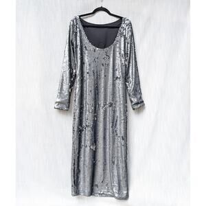 Calvin Klein Silver/Gray Sequin Boat Neck Long Sleeve Midi Dress, size L