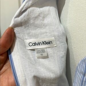 This Calvin Klein midi dress showcases a sophisticated blend of blue and white hues, perfect for making a statement. The dress features a flattering midi length that exudes elegance and versatility for various occasions. Its classic design ensures a timeless appeal, making it a must-have addition to your wardrobe.