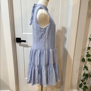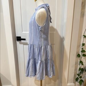 Calvin Klein Size 10 High Neck Sleeve Less Midi Tiered ruffle Hem Dress