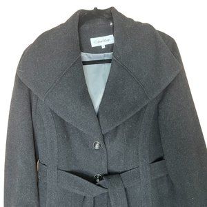Calvin Klein Size 12 Wool Blend Winter Coat Dark Charcoal Gray Peacoat Belted