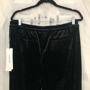 Calvin Klein Size 14 Black Crushed Velvet Wide Leg Trouser Pants Drawstring