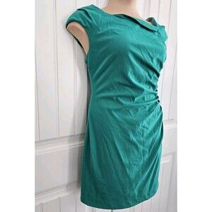 Calvin Klein Size 14 Green Cap Sleeve Ruched Sheath Fitted Cocktail Dress Lined
