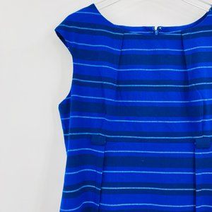 Calvin Klein Size 16 Blue Striped Sleeveless Career Midi Sheath Dress
