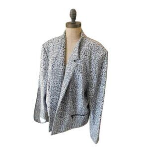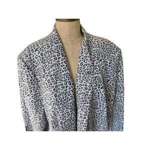 This Calvin Klein plus size blazer jacket offers a stylish print, perfect for professional or casual occasions. New with tags, it ensures a fresh addition to any wardrobe. Stand neckline, fully lined, long sleeves, mini leopard print fabric - open front and 2 front zipper pockets- Great year round jacket